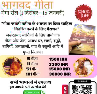 यह गीता जयंती माह है इसलिए हम आप सभी से भगवद गीता दान करने का अनुरोध कर रहे हैं।