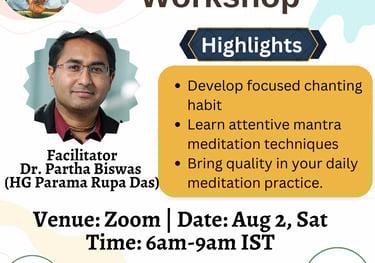 This is 4 hour workshop by HG Param Rupa Das Prabhu on how to develop habit of attentive chanting using CHANT4MAT technique
